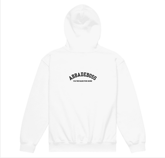 You are made for more Abbadeboss heavy blend white hoodie for boys / hoodie for girls