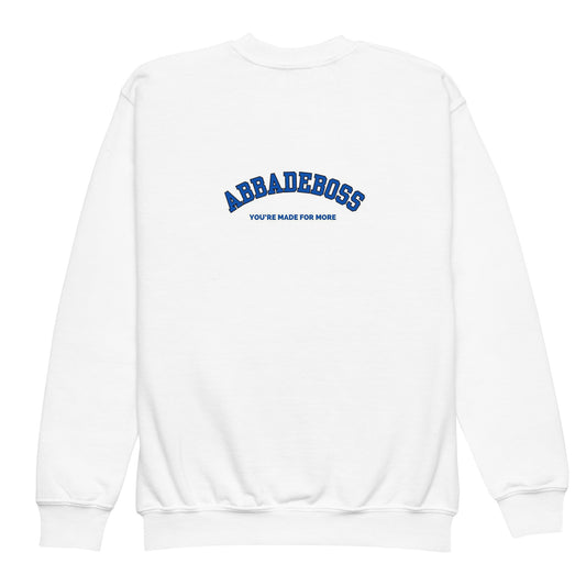 Abbadeboss blue curve logo crewneck white sweatshirt for boys / sweatshirt for girls